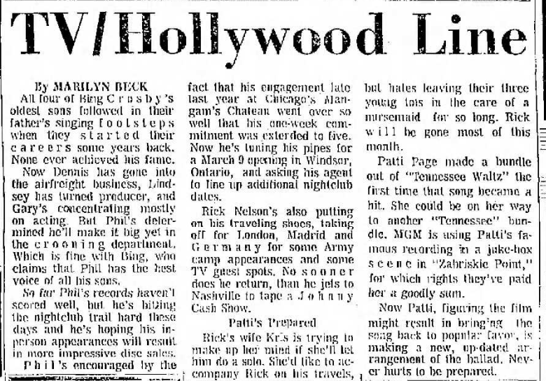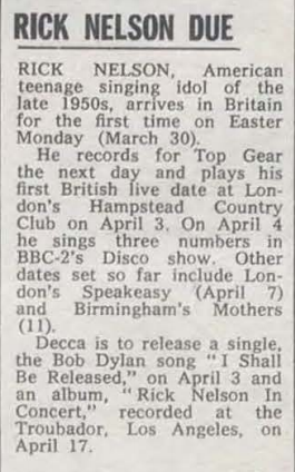 “Lyric Where It’s At–Rick Nelson,” Roger Kaye, Fort Worth Star Telegram, February 14, 1970